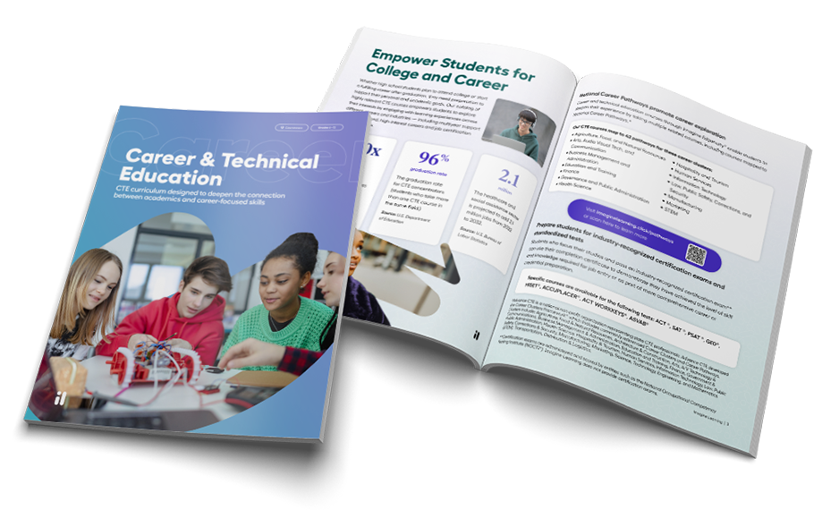 Whether high school students plan to attend college or start a fulfilling career after graduation, they need preparation to support their personal and academic goals. Our catalog of highly relevant career and technical education (CTE) courses empowers students to explore their interests by engaging with learning experiences across different careers and industries — including multiyear support for high-demand, high-interest careers and job certification exam readiness.