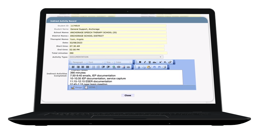 - Provide transparency for stakeholders through a robust reporting system for speech and language therapy minutes provided (direct and indirect)